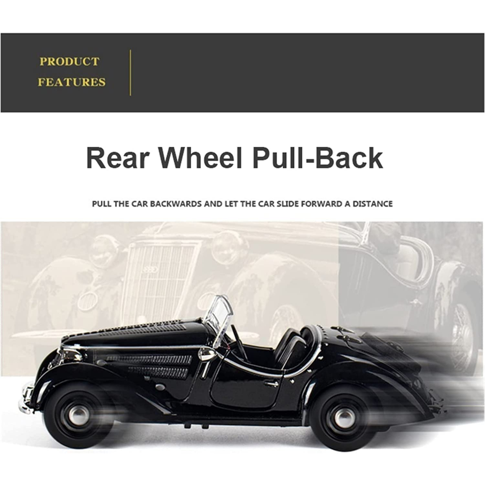 Crafted using cutting-edge die-casting techniques and zinc alloy material, the metal automobile model showcases a sleek and powerful body.