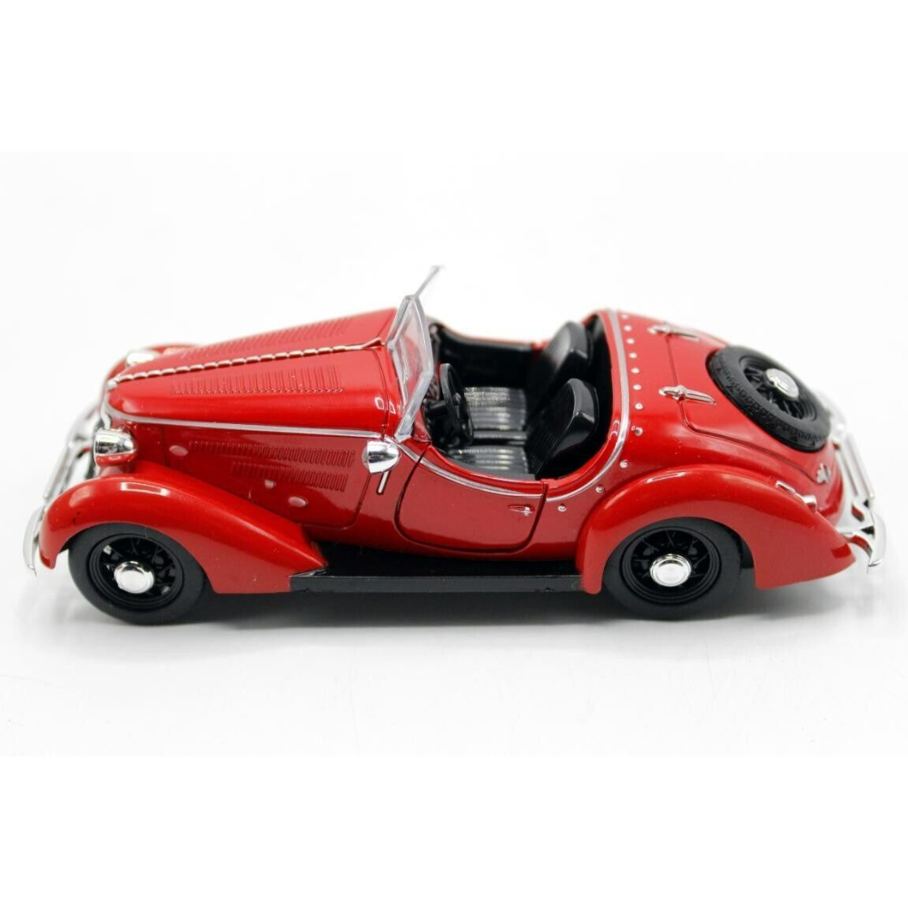 It boasts rubber tires, plated wheels, and soft rearview mirrors, all meticulously crafted to resemble the original elements.