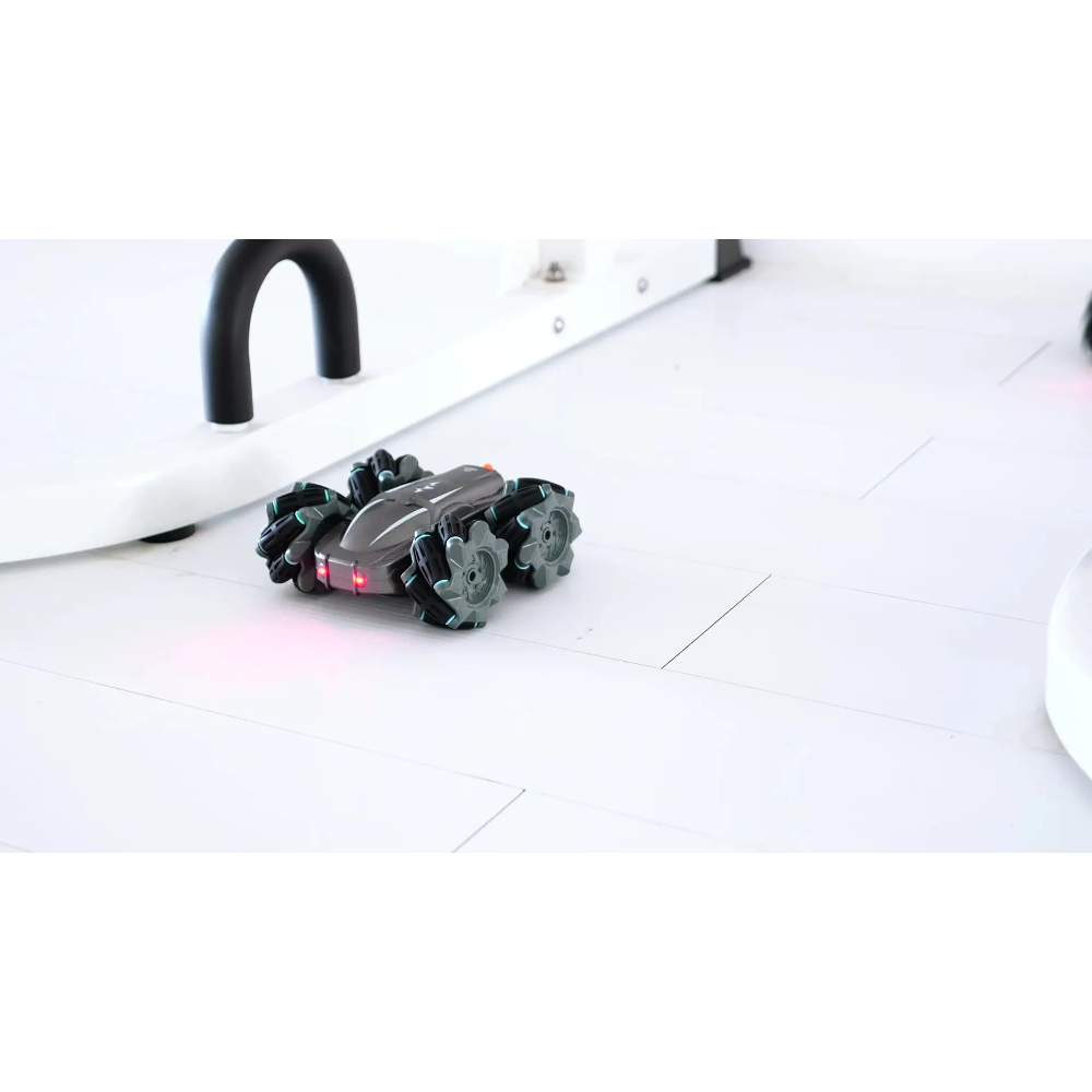 MULTI-ROLLER TIRES AND DURABLE DESIGN: Double side can be driven, will even drive when it’s upside down, go 45° sideways drift, 180° flip and 360° rotate.