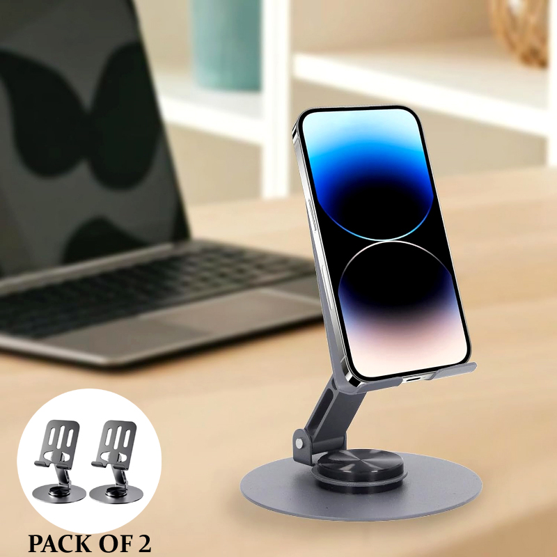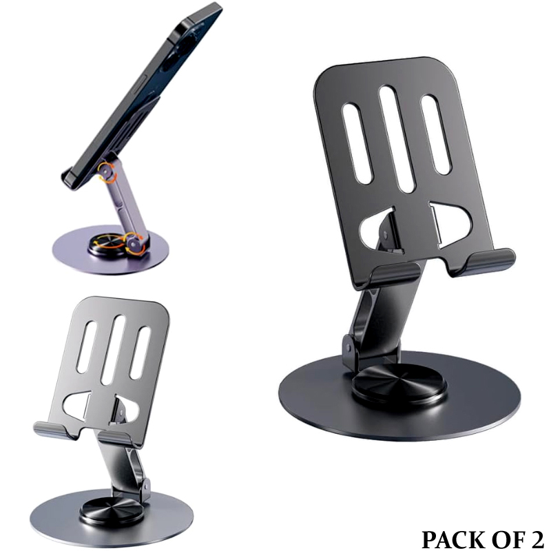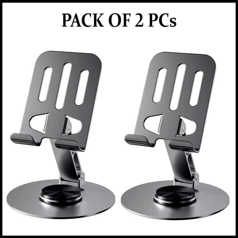 2 Pcs 360° Rotatable Metal Phone & Tablet Stands, Adjustable Foldable and Durable Desktop Holders
