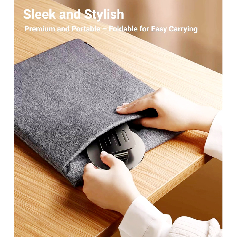 The 360° rotatable base allows effortless angle adjustments, while the adjustable height and tilt ensure ergonomic comfort for various activities. Its foldable and lightweight design makes it easy to store and carry, making it perfect for home, office, or travel.