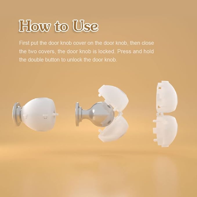 - How to Use—First put the door knob cover on the door knob, then close the two covers, the door knob is locked. Press and hold the double button to unlock the door knob.