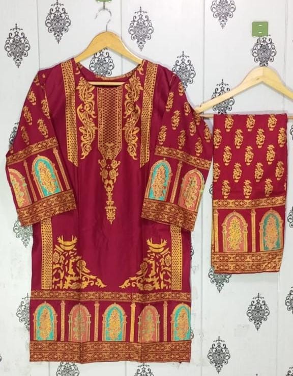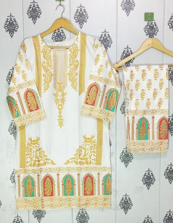 New Gulab 2 Pcs Linen Dress | Rose Print shirt and trouser for girls & Women