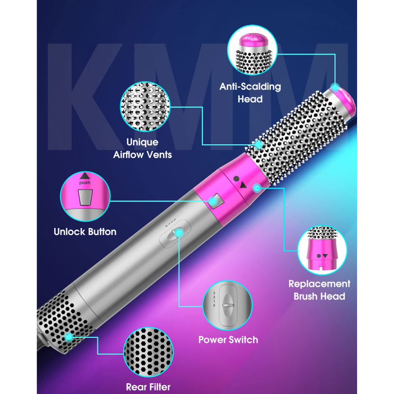 Introducing our 5-in-1 Hot Air Brush, the ultimate styling tool for all your hair needs. This versatile brush comes with five interchangeable heads, allowing you to dry, curl, straighten, and create beautiful styles with ease. Say goodbye to clutter and hello to salon-worthy results at home.