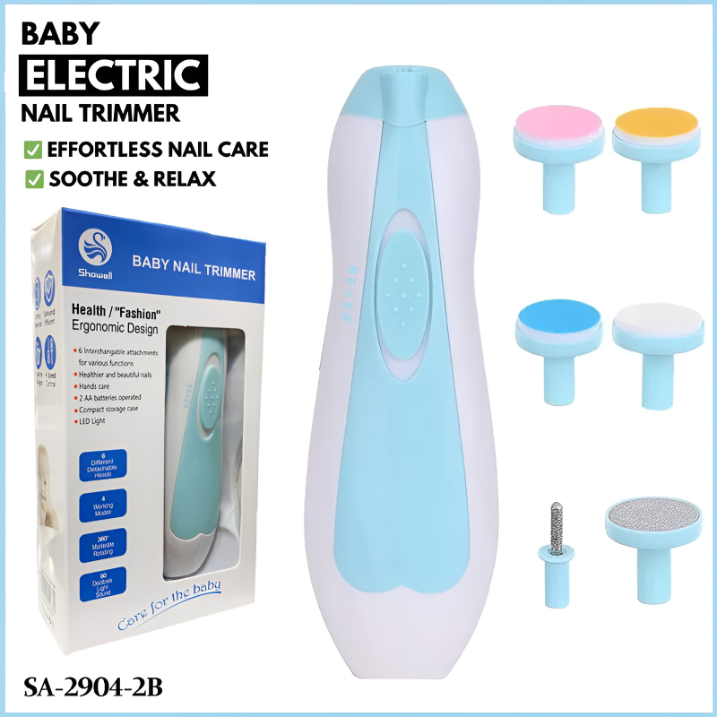 This 6-in-1 Electric Baby Nail File promotes healthier nails, offering safe, gentle, and efficient trimming for users of all ages. Simply insert the batteries, choose the appropriate grinding head, attach it to the top of the unit, and gently trim your baby’s nails by holding their fingers or toes.