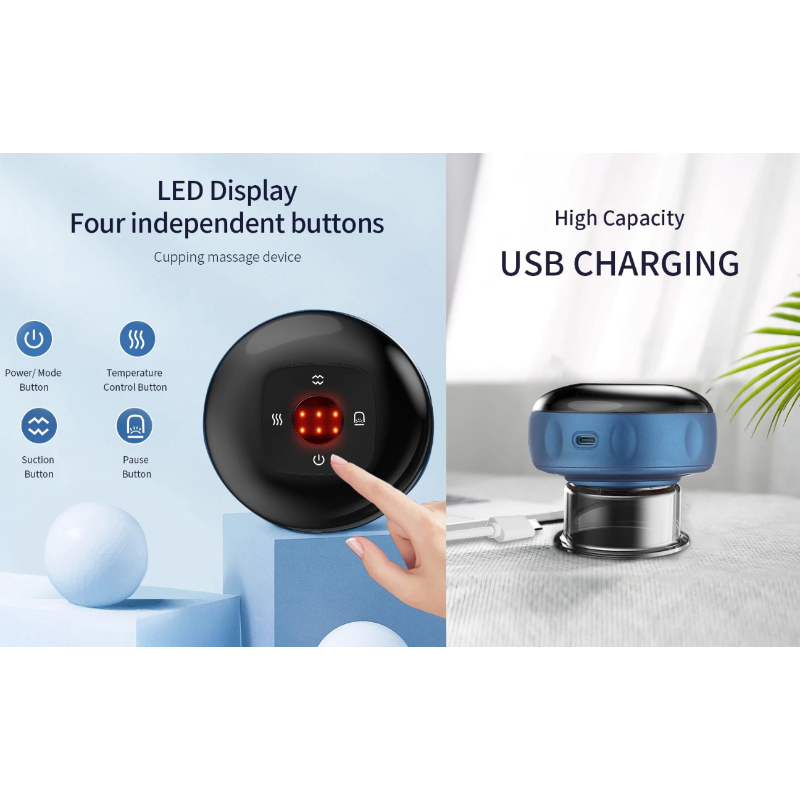 User-friendly LED display screen and four independent buttons allow easy control of the device. Seamlessly switch between functions, adjust the suction intensity and heating levels, and pause cupping absorption at your convenience.