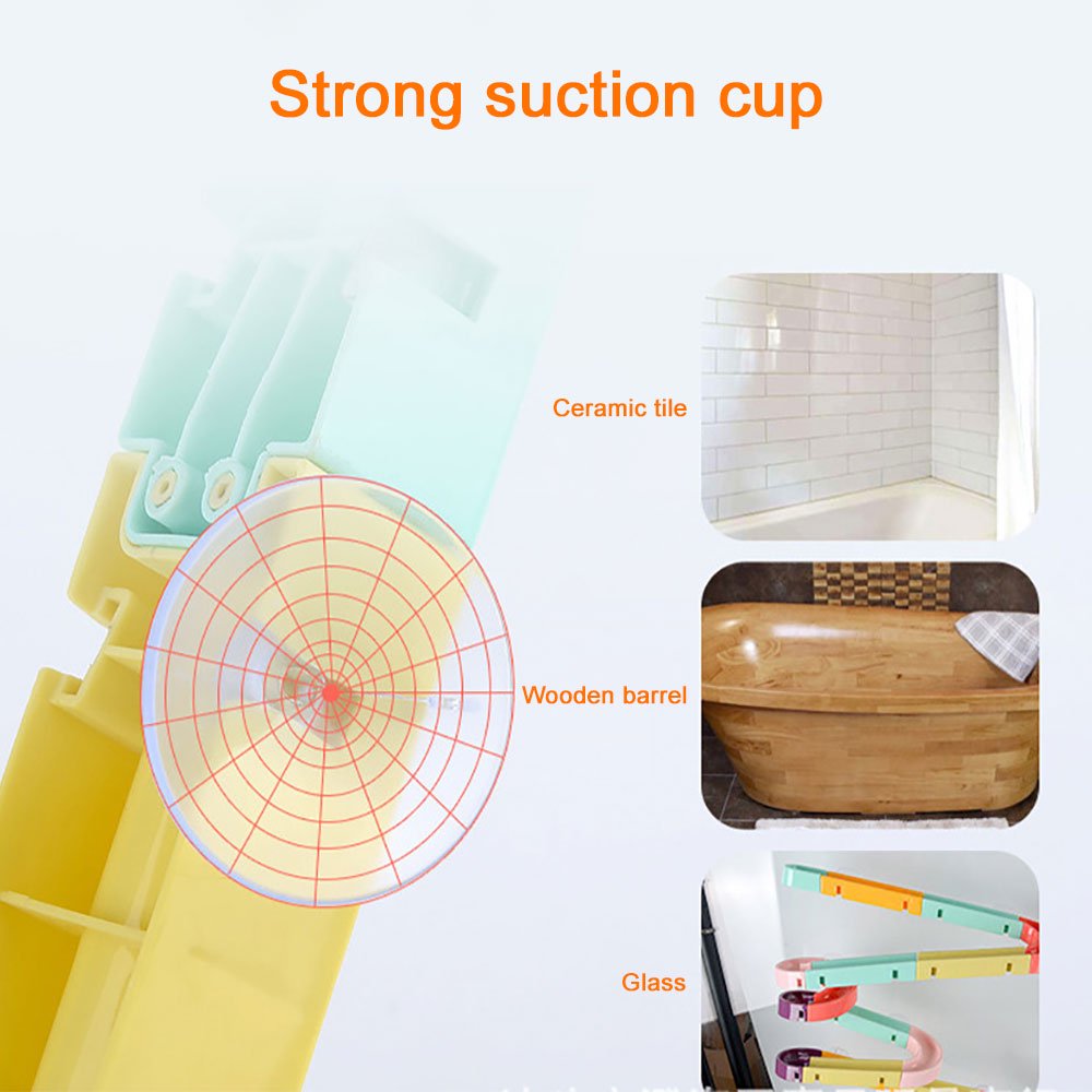 - It is easy to join the two pieces of the track toy together. During parents’ busy time, children are willing to play it for a long time by their selves. During the bath time, this water track bath toys in bright colors are easier to attract kids’ attention.