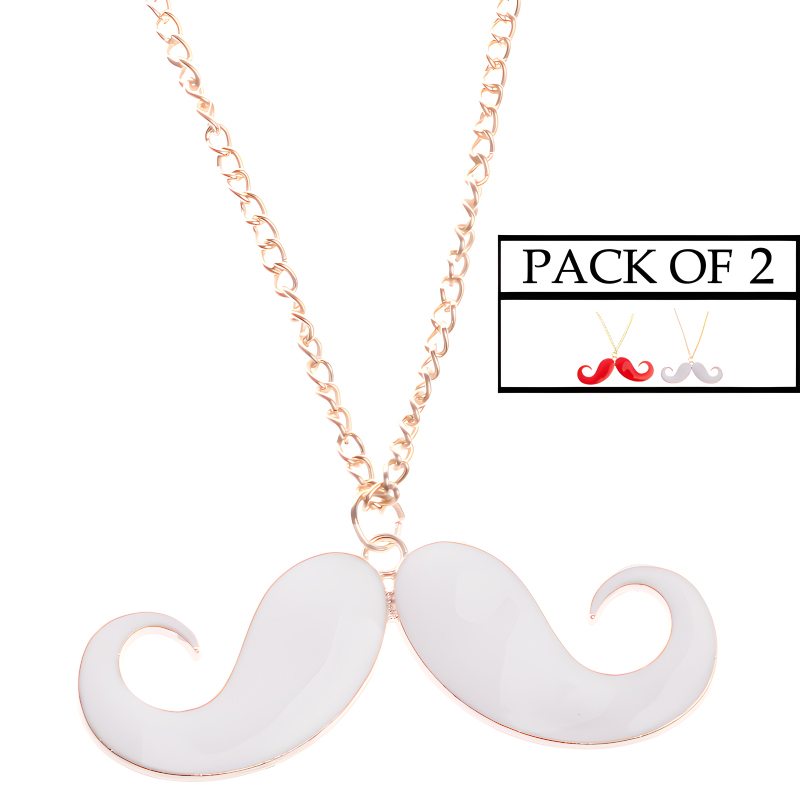 Chic Charm Set Of 2 Mustache Pendants With Golden Chains