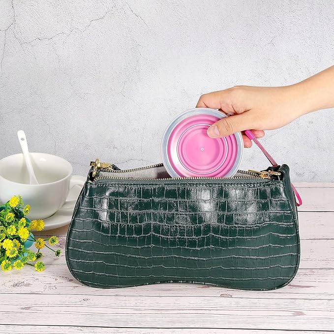 - Advantage: It is made from premium silicone, odorless, non-staining, light in weight, portable and compact, durable and reusable. Adopting a collapsible design, is space-saving and portable to carry, it’s suitable to place in your pocket, luggage, handbag, and backpack
