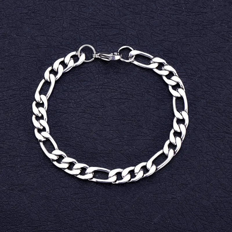 Durable & Glossy Finish Men’s Solid Stainless Steel Figaro Chain Bracelet