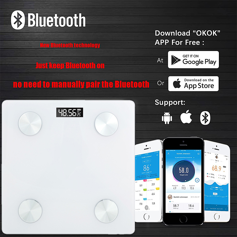 Electron Digital Scale LCD Display Smart Bluetooth BMI Weight Composition Analyzer With Tempered Glass