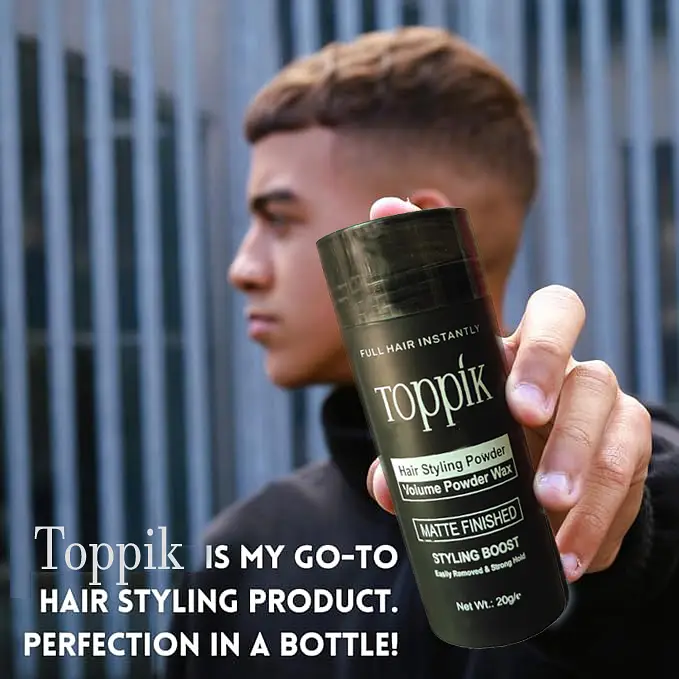 Toppik Hair Styling Powder Volume Powder Wax Matte Finished Styling Boost Easily removed and strong hold | Root Hair Styling Matt Look | Hair Volumizer & Styling Powder Invisible Texture | Instant Volume and Root Boost | All Hair Types | 20 gr Toppik Hair Styling Powder Volume Powder Wax Matte Finished Styling Boost Toppik Hair Styling Powder Volume Powder Wax Matte Finished Styling Boost Easily removed and strong hold packing is 20g per bottle, its gives you instant fuller and thicker hair. This is new formula for hair, both male and female can use this. Create instant texture and control with Toppik Hair styling powder. The volume powder consists of feather-light flakes, which you can distribute precisely and economically on your towel-dry, dry or blown hair thanks to the smart hair powder can. The texture of our unique texture powder has been developed according to a special formula that turns “doing your hair” into a true styling experience. Adds volume and texture to all hair types and lengths with a natural and matt surface. Due to the light hold of Toppik Hair Styling Powder, your style will be rework able throughout the day allowing you to correct your style and ensure you are constantly looking your best throughout the day.