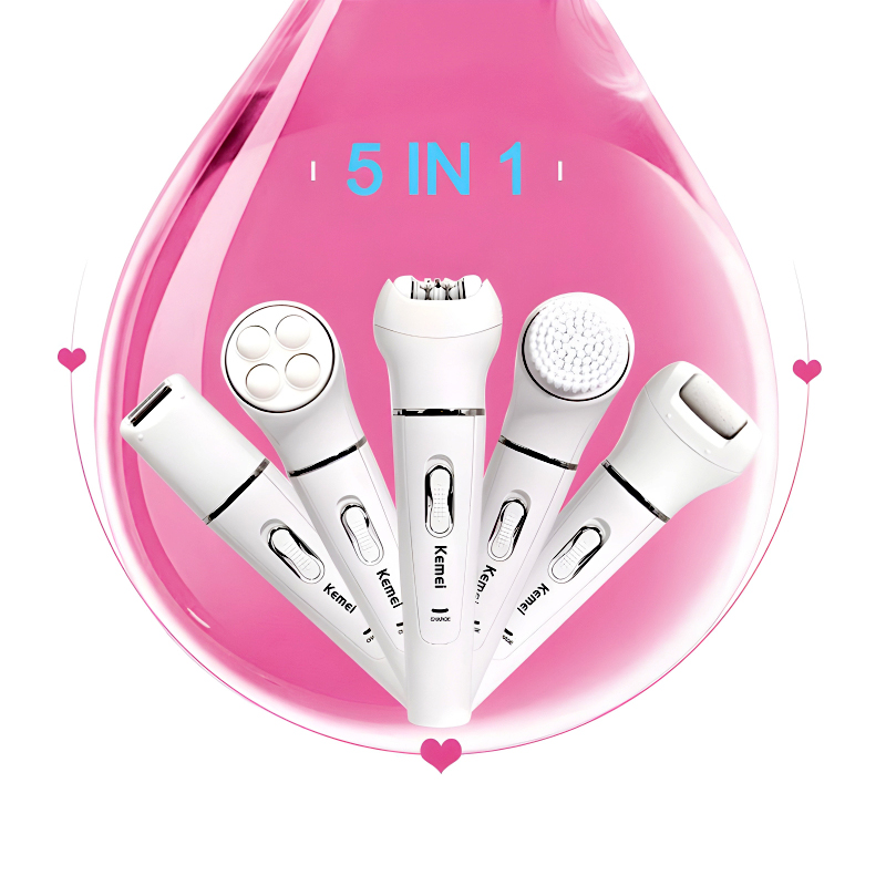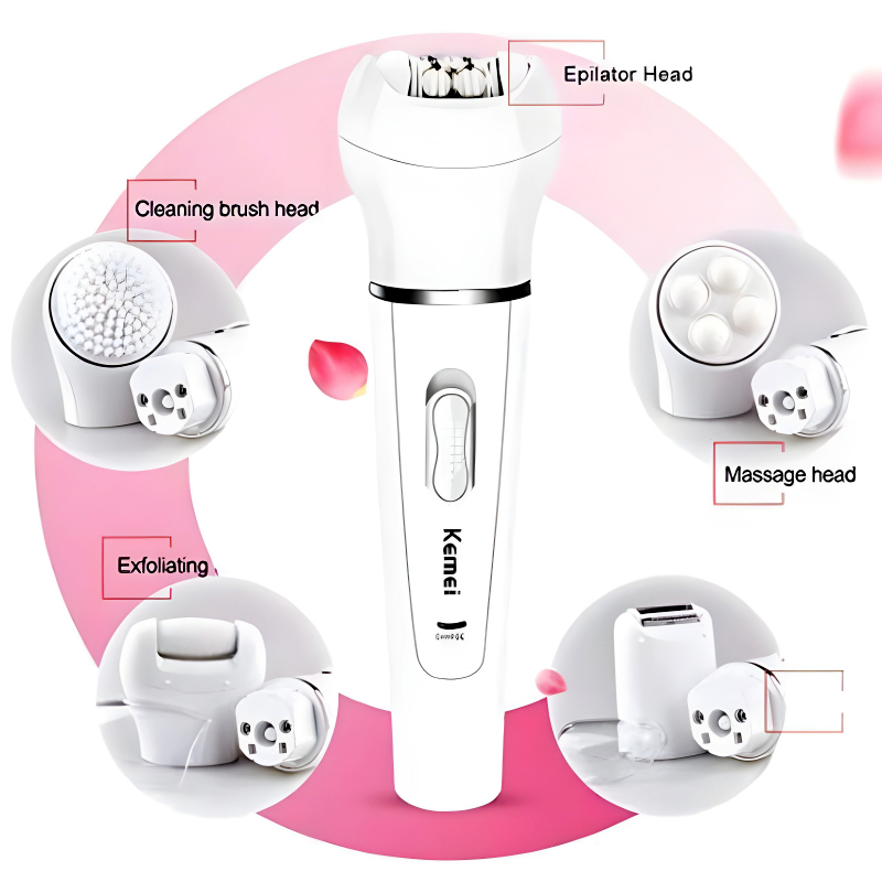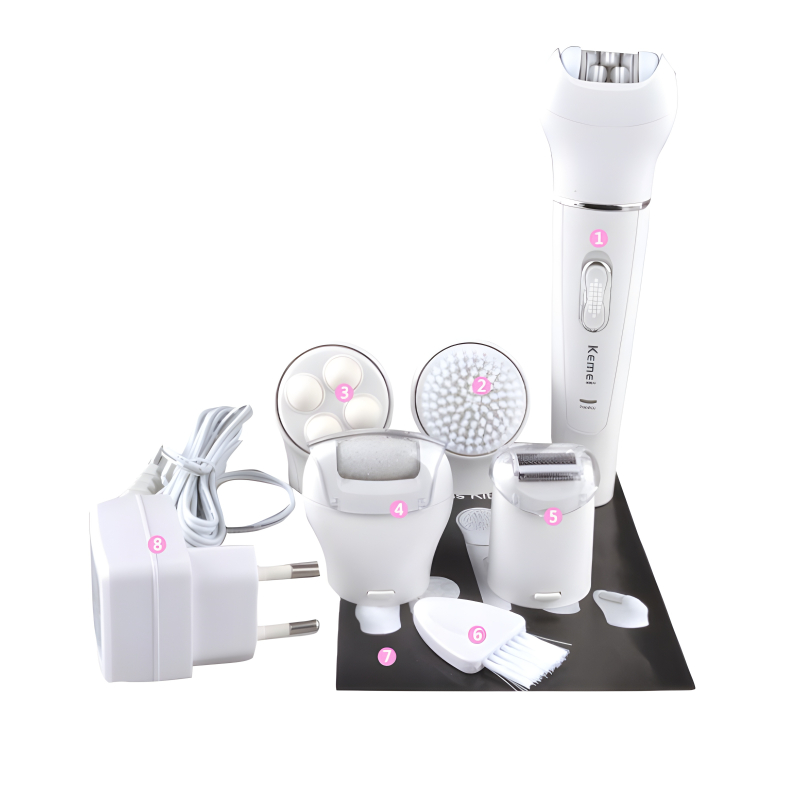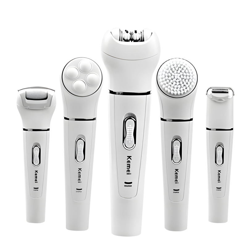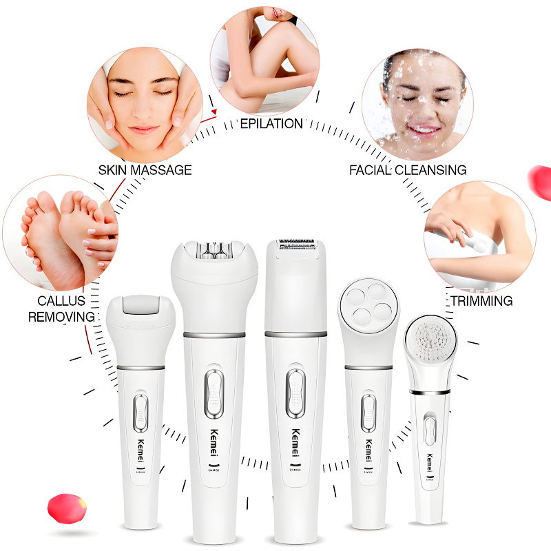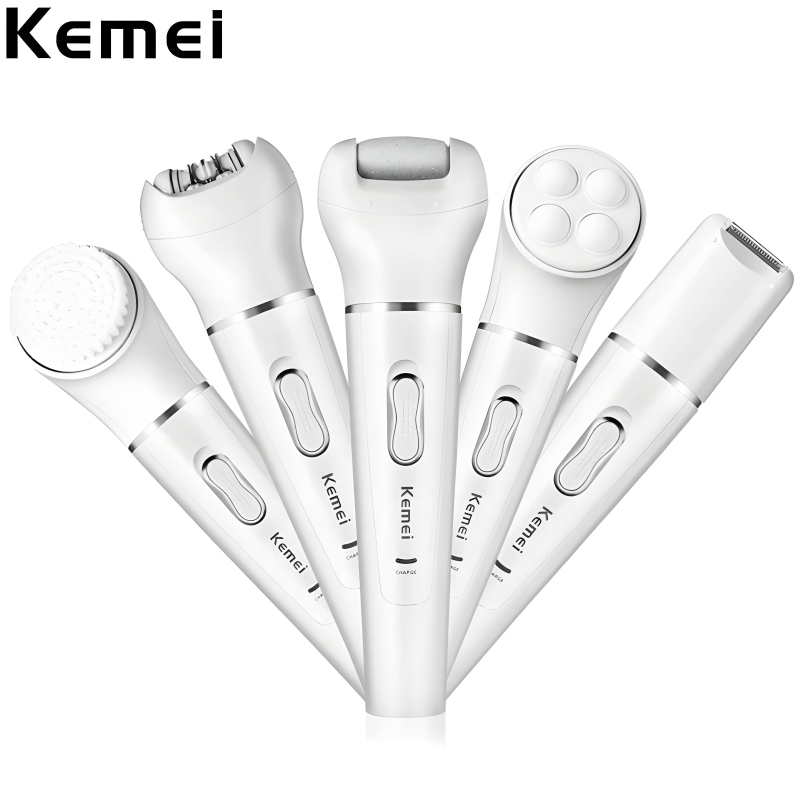 Kemei KM-2199 Multi-Functional Rechargeable Epilator: 5-In-1 Beauty Tools Kit For Women