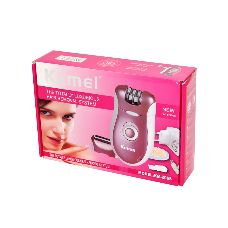The KM-2068 Kemei 2-In-1 High-Quality Electric Rechargeable Shaver Epilator For Women is a luxurious hair removal system designed for ease and efficiency. This versatile device is both a beard shaver and an epilator, providing flexibility for your hair removal needs. It is intended to be gentle on delicate areas, making it ideal for bikini lines and underarms.