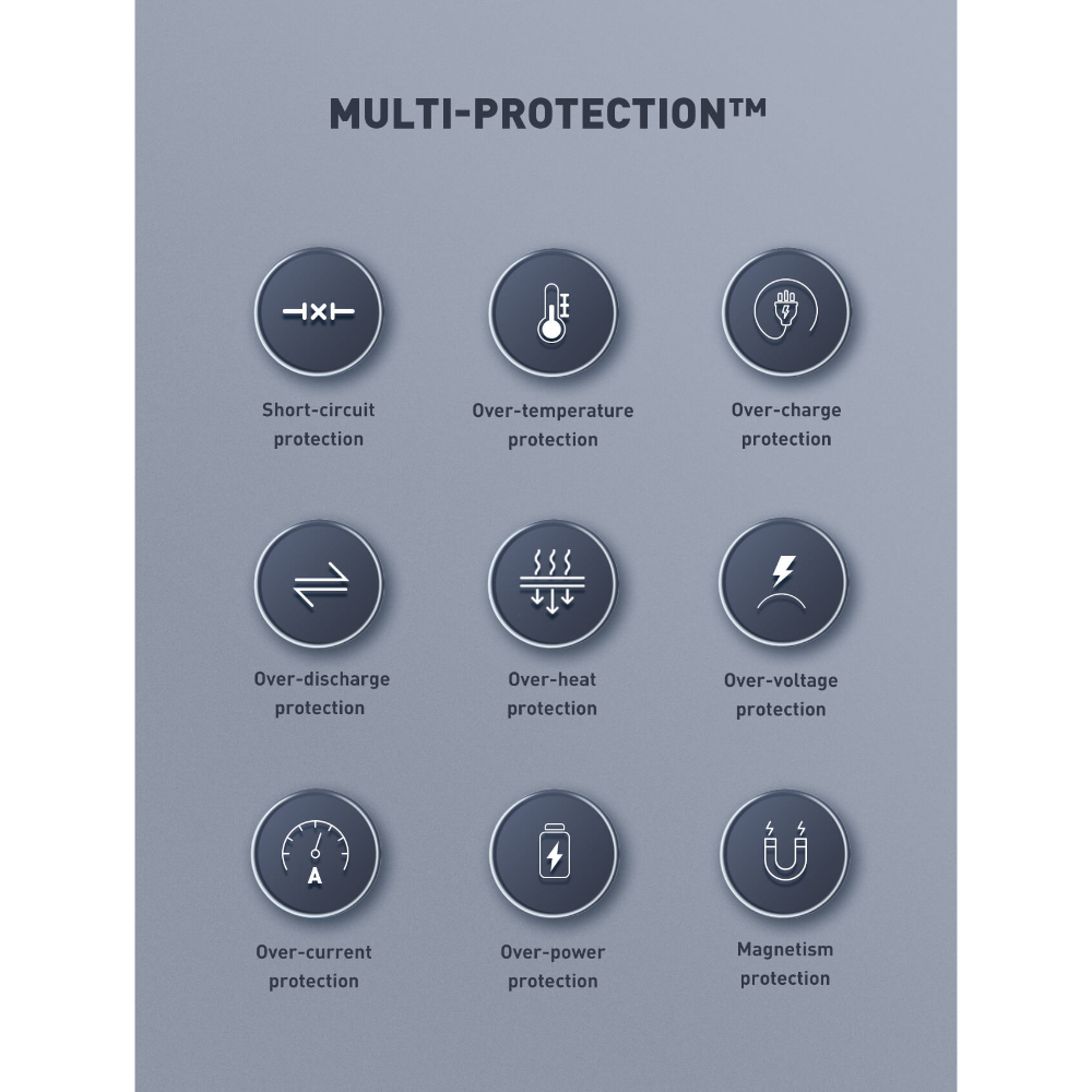 Built with fire-proof PC material and 9 multi-protection systems for safe and reliable charging79.