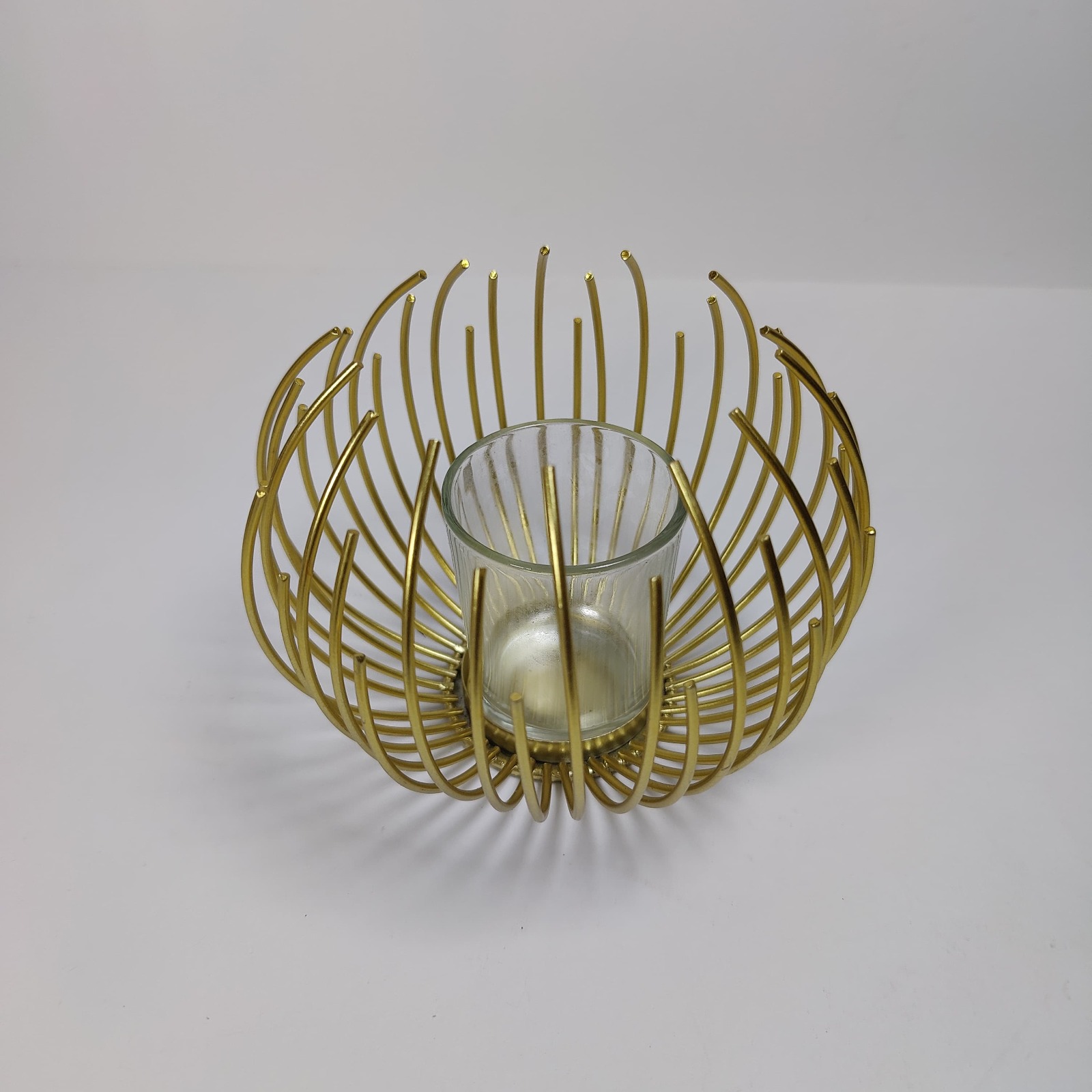 Golden Pearl Candle Stand, a stunning addition to your home decor collection. Crafted from the finest metal material, this elegant candle holder exudes luxury and sophistication. The intricate design and golden finish make it a perfect accent piece for any room.