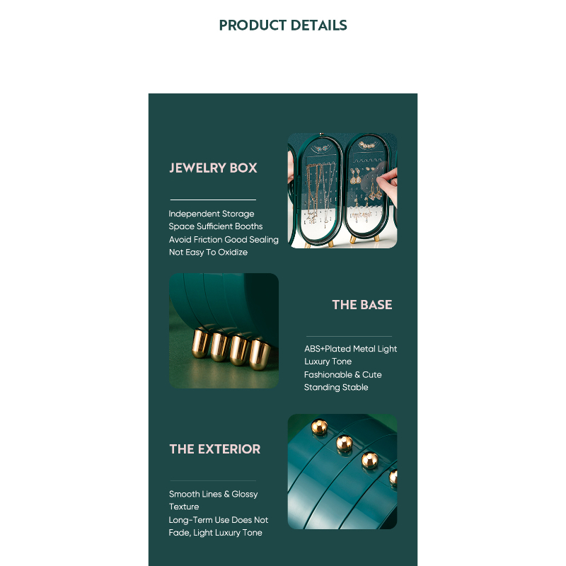 The advantages of this elegant jewelry organizer box extend beyond organization and convenience. By closing the jewelry box, you create an airtight environment that effectively delays the aging of your precious pieces, protecting them from the harmful effects of air exposure and preventing the accumulation of dust.