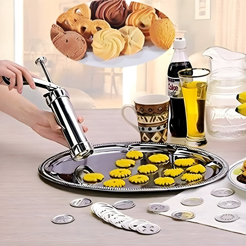 Get creative and bake like a pro with our Multi-Pattern Aluminum Cookie Press Set.