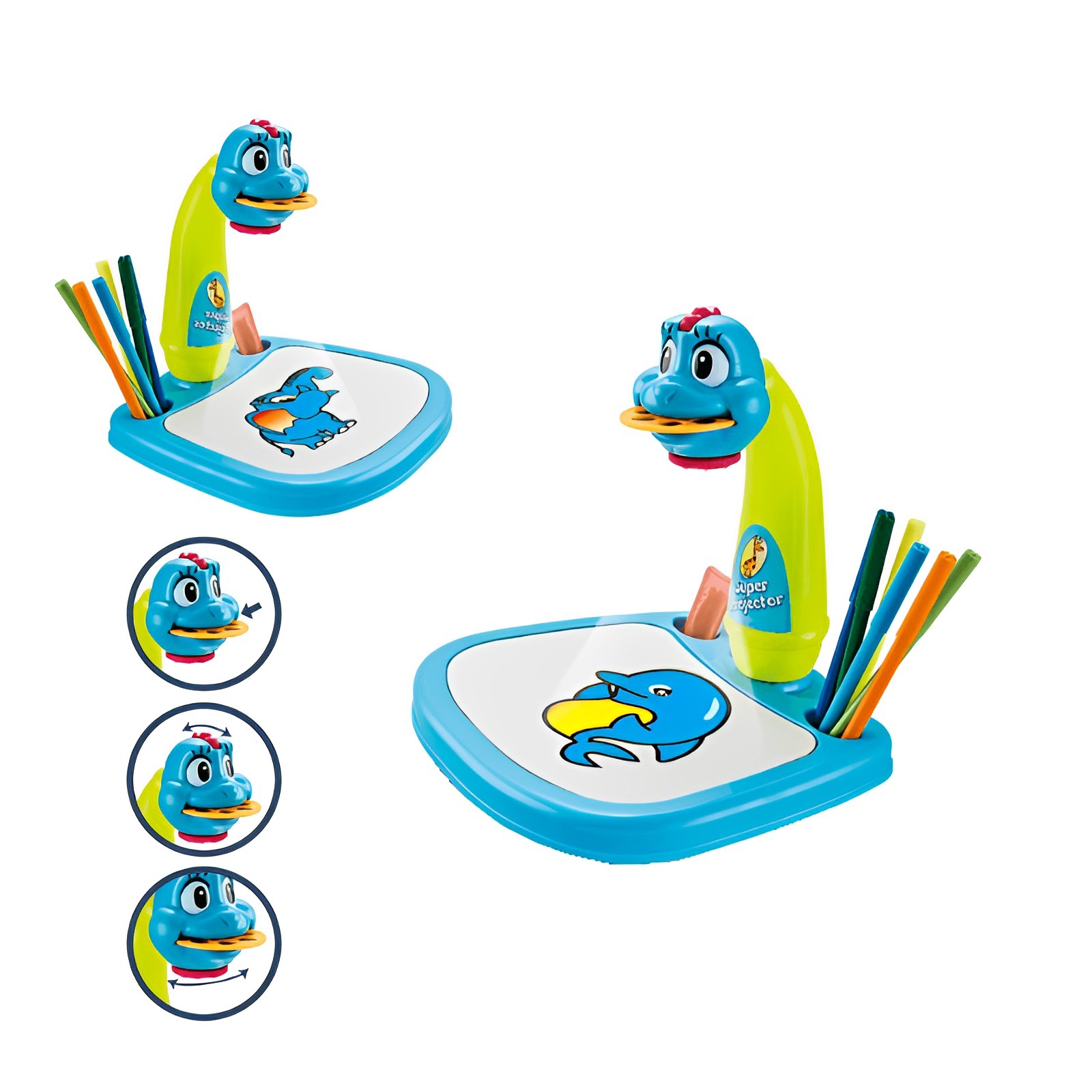 The cute projector for learning to draw in the shape of a blue dinosaur is a perfect proposition for every toddler who loves to draw.