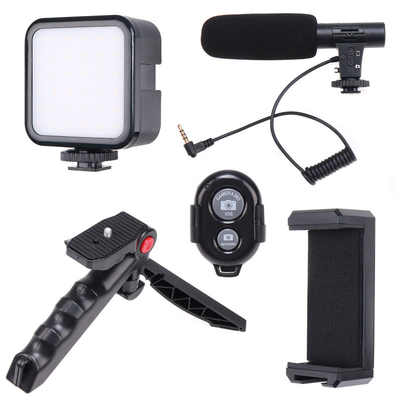 Multifunctional Professional Vlogging Kit With Tripod LED Video Light Microphone And Phone Holder