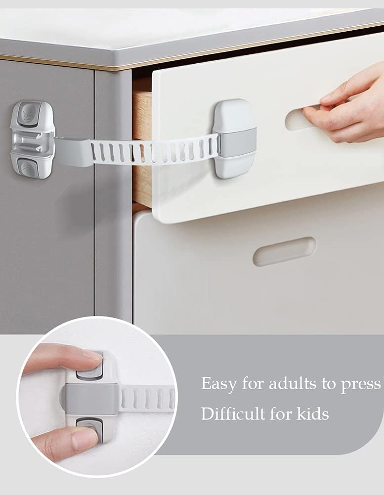 - MULTI-PURPOSE STRAPS: Elevate your childproofing efforts with these adaptable safety straps. Secure cabinets, appliances, drawers, refrigerator, trash bin, toilet seat, and more. Effortlessly maintain an organized space while ensuring your curious child’s safety.Â