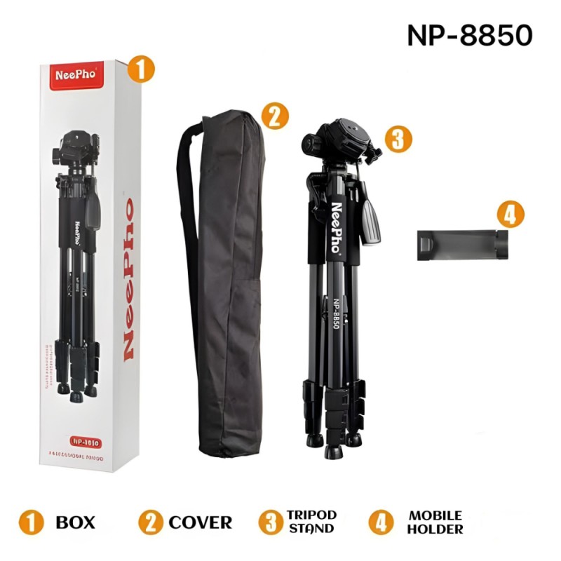 The Neepho NP-8850 Professional tripod makes it easy to take photos and helps to steady and focus the quality of pictures and videos.