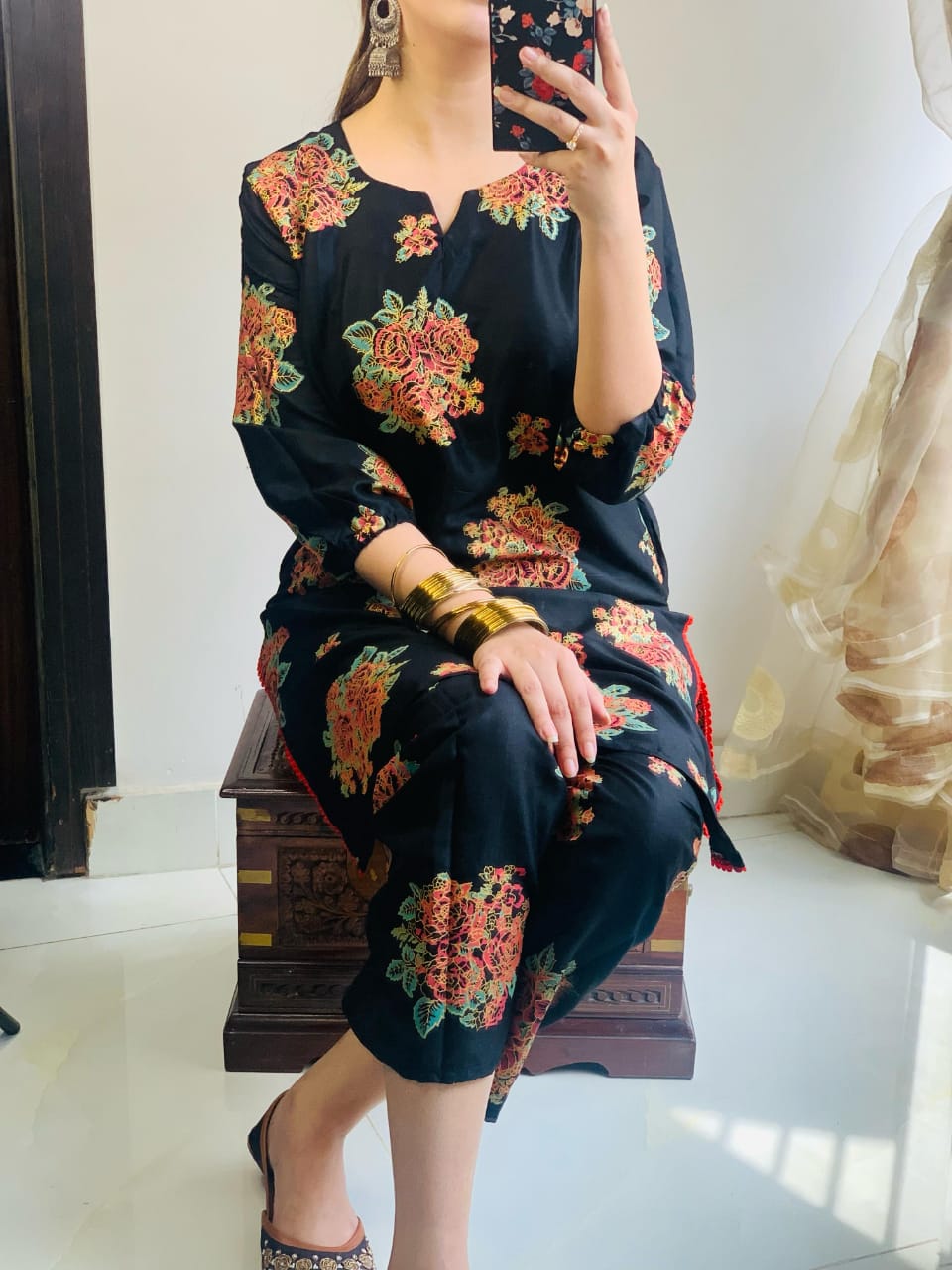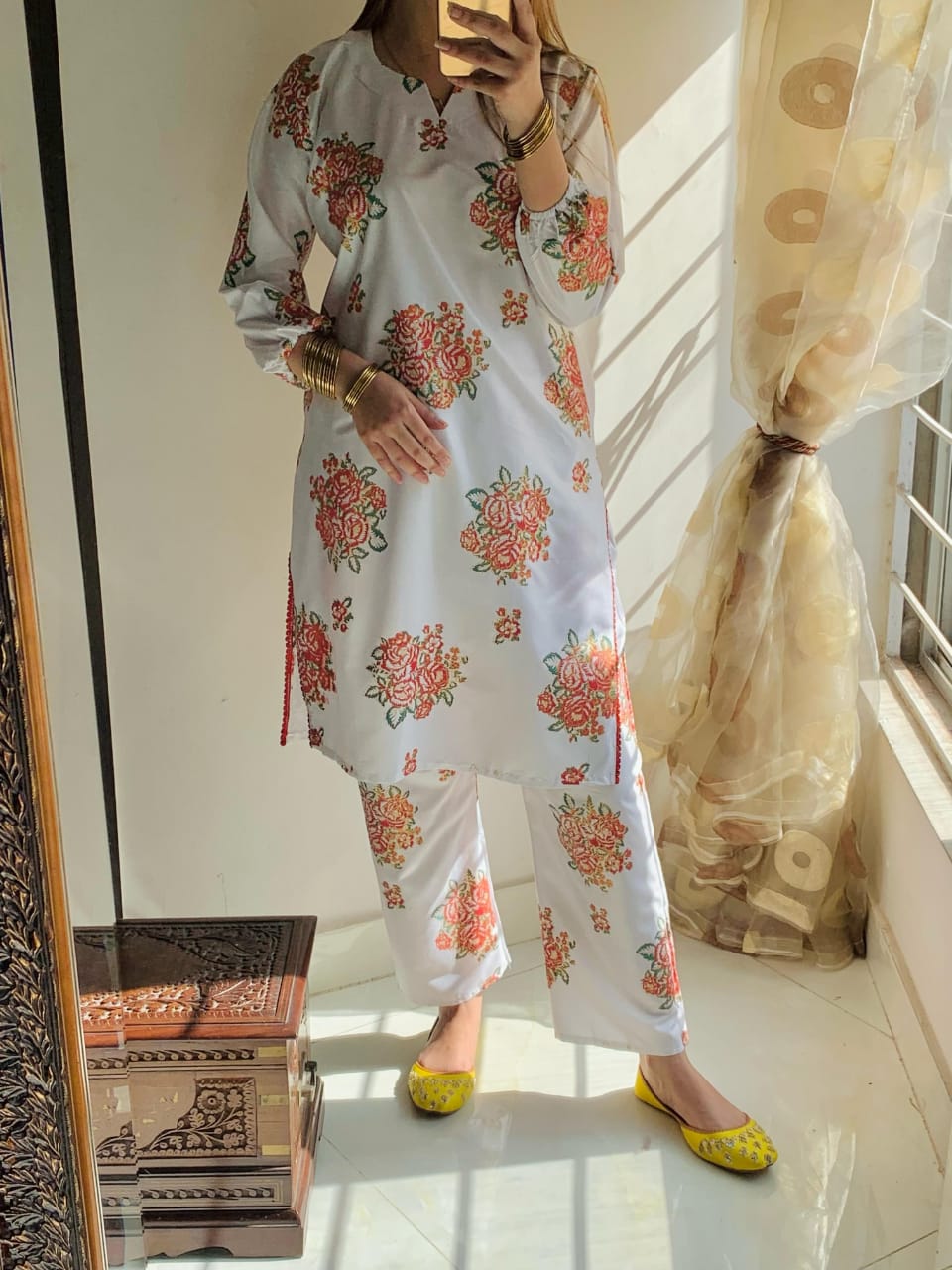 New Gulab 2 Pcs Linen Dress | Rose Print shirt and trouser for girls & Women