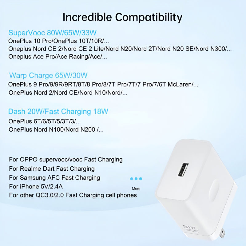 Compatibility: SuperVOOC, Warp Charge, Dash