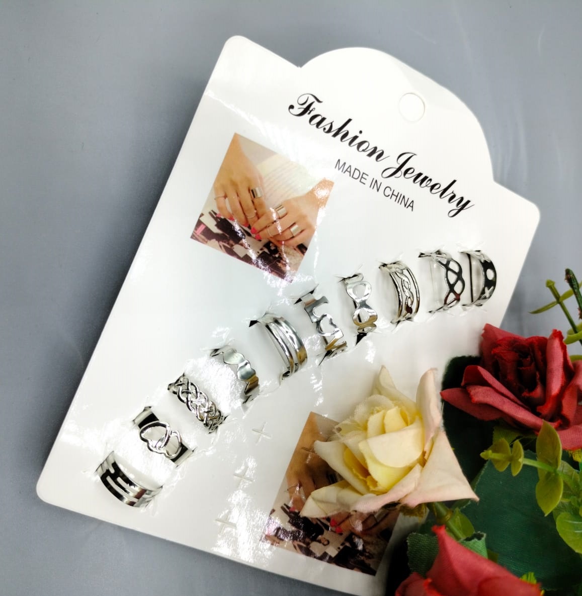 Be the first to review “Pack Of 10 Adjustable Multiple Design Ring Set – Silver” Cancel reply