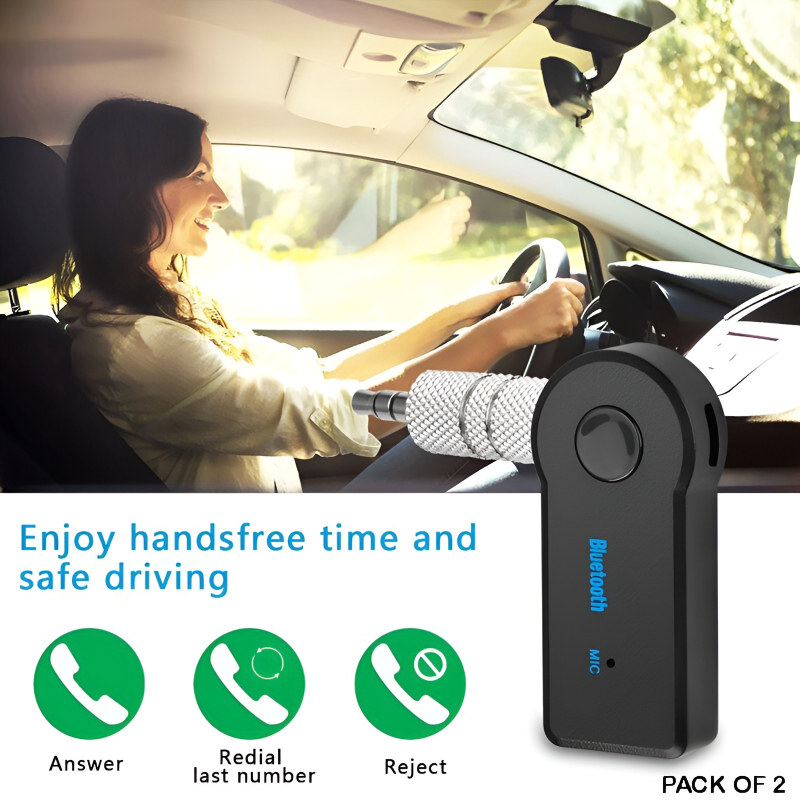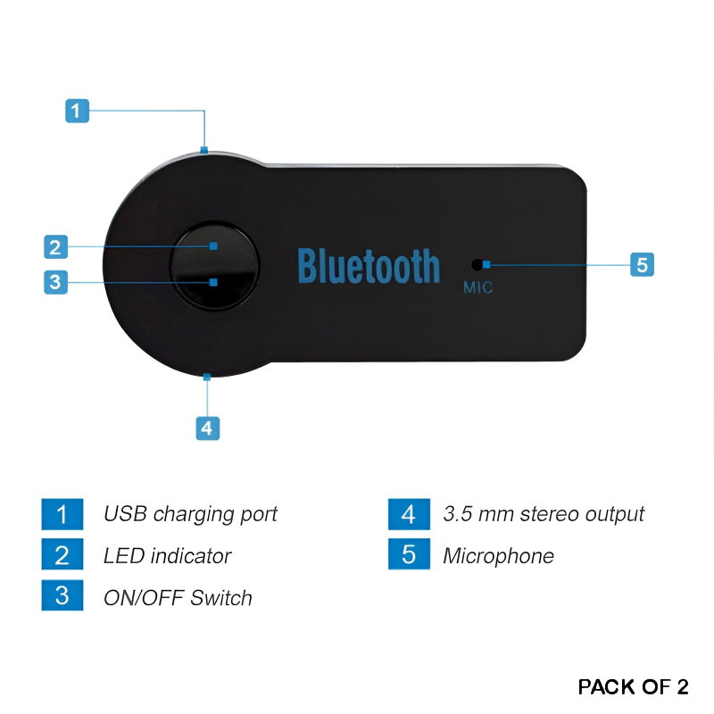 Pack of 2 Bluetooth 5.0 Transmitter Adapters with 3.5mm Audio Jack – Wireless Music Handsfree Car AUX Headphone Receivers