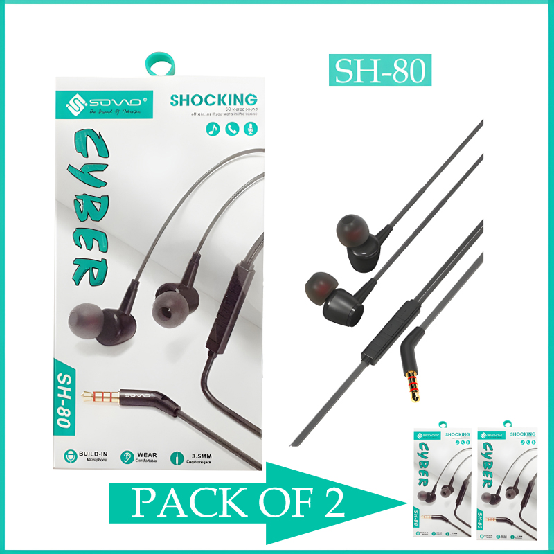 Pack Of 2 SOVO SH-80 Cyber Shocking 3D Stereo Sound Handsfree