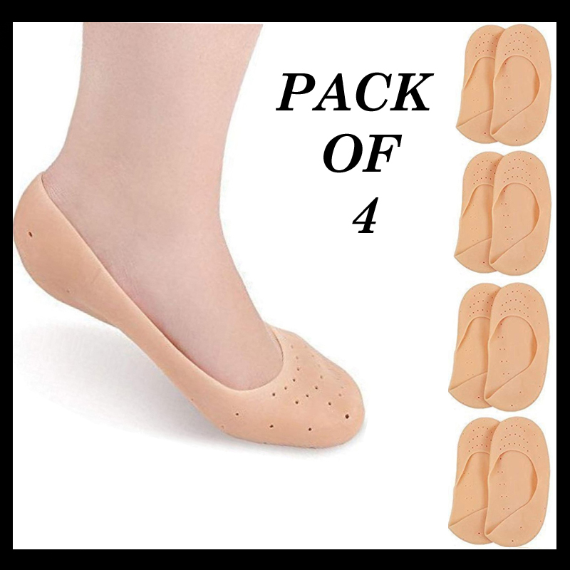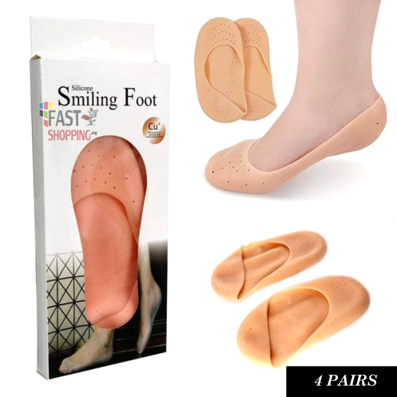 Pack Of 4 Pairs Smiling Foot Anti Crack Full Length Silicone Foot Protector Moisturizing Socks For Foot-Care