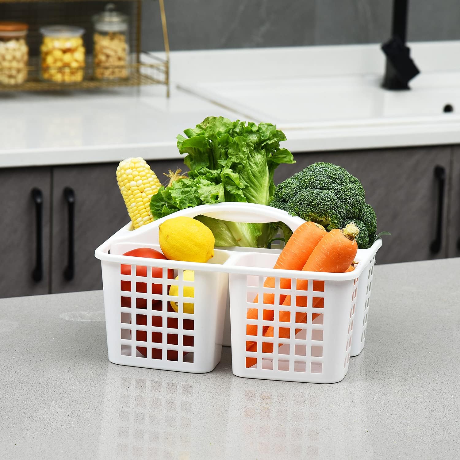 Plastic Bathroom Basket Kitchen Sink Basket Shower Caddy Basket with Compartments, Portable Divided Cleaning Product Storage Organizer with Handle Storage Basket Organizer for Bathroom Kitchen Laundry Hand Tools Fruit Toiletries Multipurpose Basket