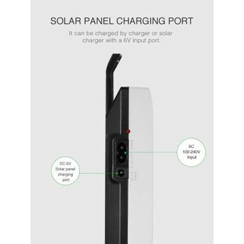 Solar Panel charging port helps you to charge it with solar power when direct power source is unavailable.