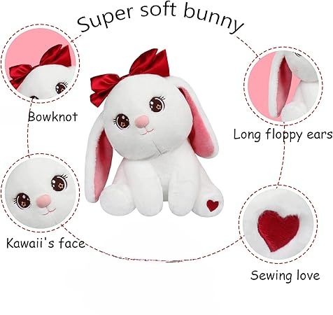 - Best Companion: The material is very pleasant to the touch, suitable for both adults and babies. An interesting bunny plush toy with a bow will become a good friend of the baby and will accompany the child to grow up. A solution for bedtime: it will make your children run to their room with their new friend for a good night’s rest on their new favorite pillow.