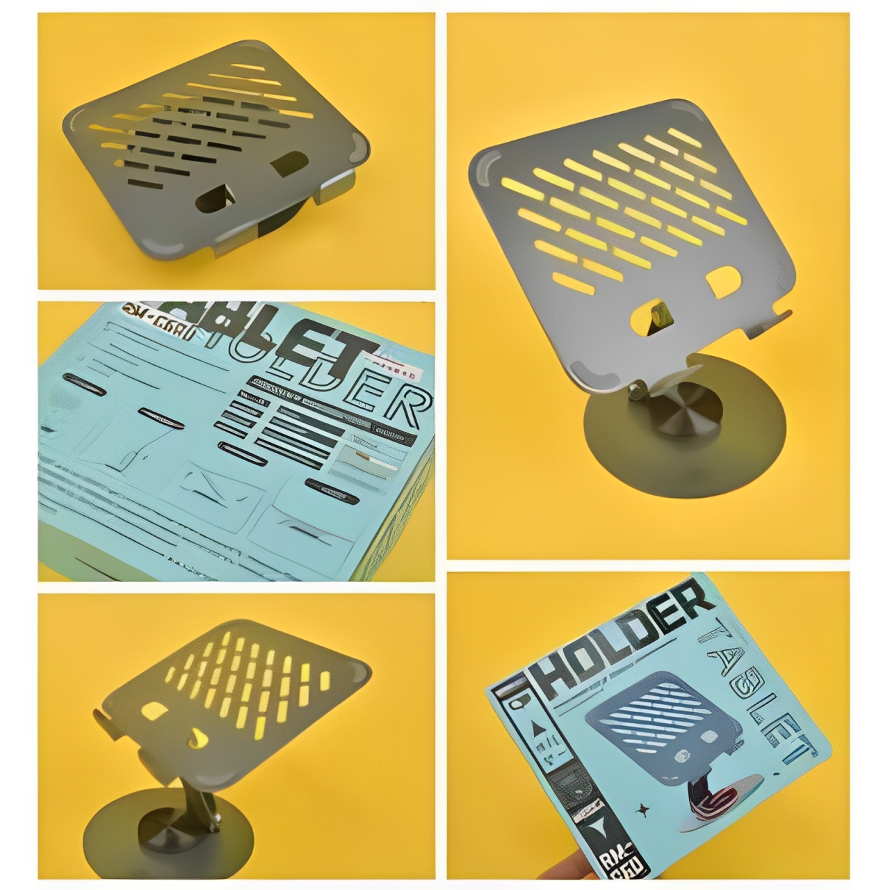 Made from high-quality aluminum alloy, it offers 360° rotation, adjustable height and angle, and a large support panel for stability.