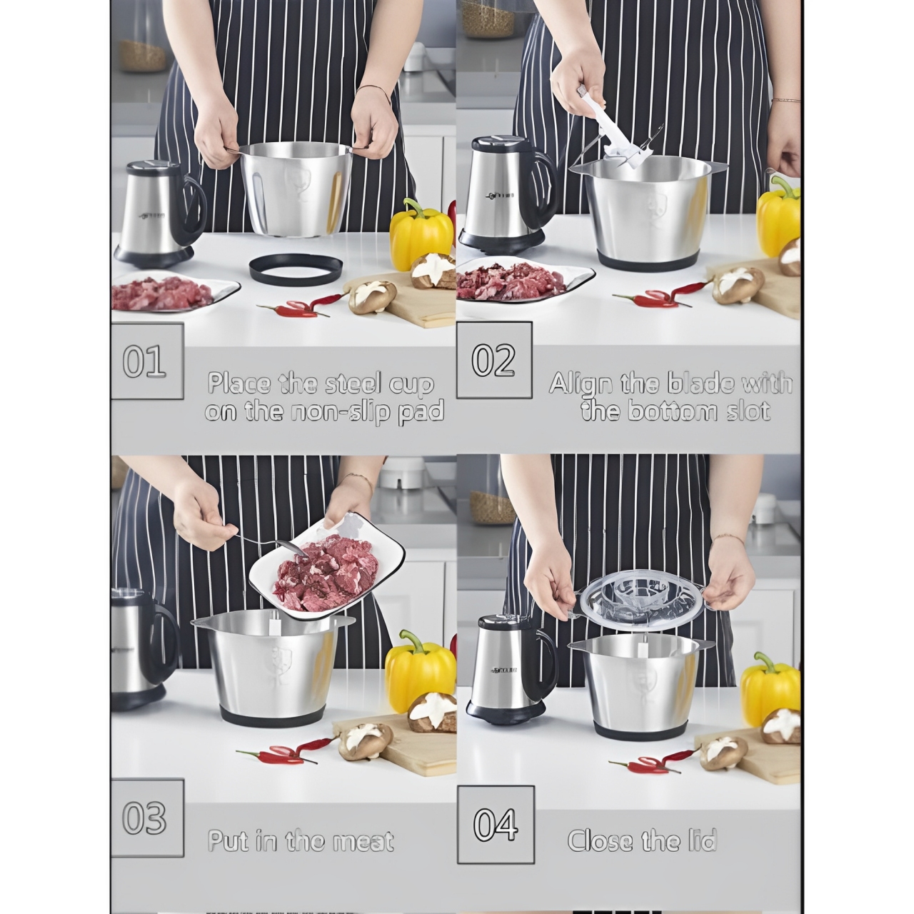 Convenient and Easy to Clean: With a user-friendly interface and a durable stainless-steel body, this chopper is simple to operate, quick to clean, and built to last.