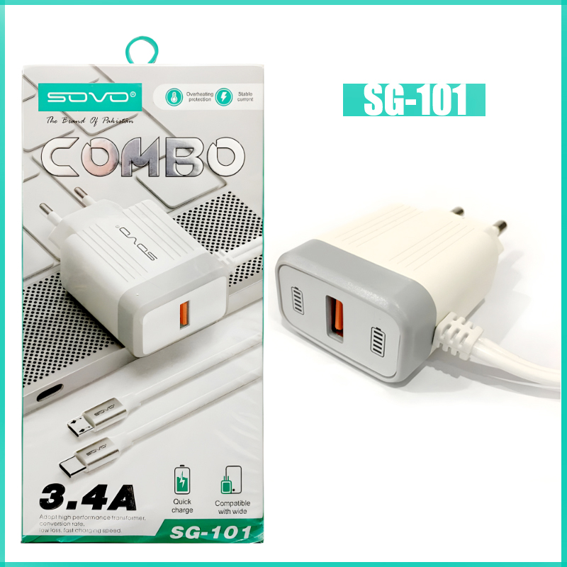 Presenting the SOVO Combo SG-101 3.4A Quick Charger with Dual Attached Cables, your ultimate solution for fast, efficient, and worry-free charging. Engineered with cutting-edge features to elevate your charging experience, this charger ensures optimal performance and safety every time you plug in.