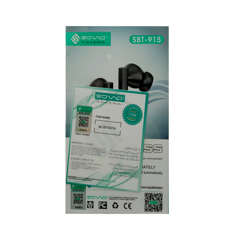 In summary, the SOVO Orion-V SBT-915 High-Fidelity Super Bass Airpods combine cutting-edge technology, user-friendly features, and exceptional sound quality to redefine your wireless audio experience. Immerse yourself in the world of superior audio with these high-quality, auto-connect earbuds.