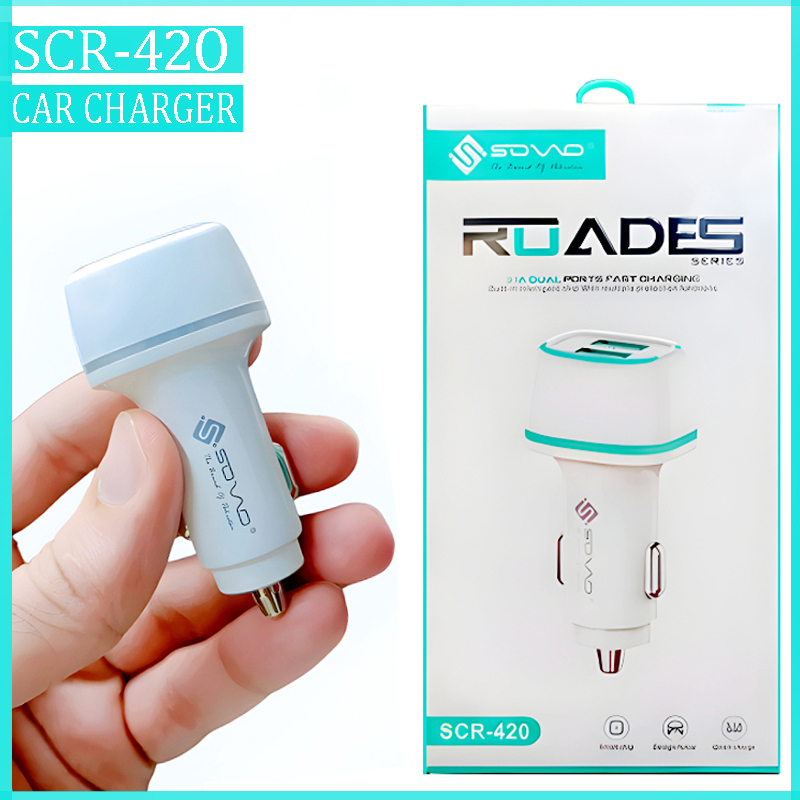The Sovo (SCR420) ROADES 3.1A Dual Ports Fast Car Charger is designed for fast and efficient charging.