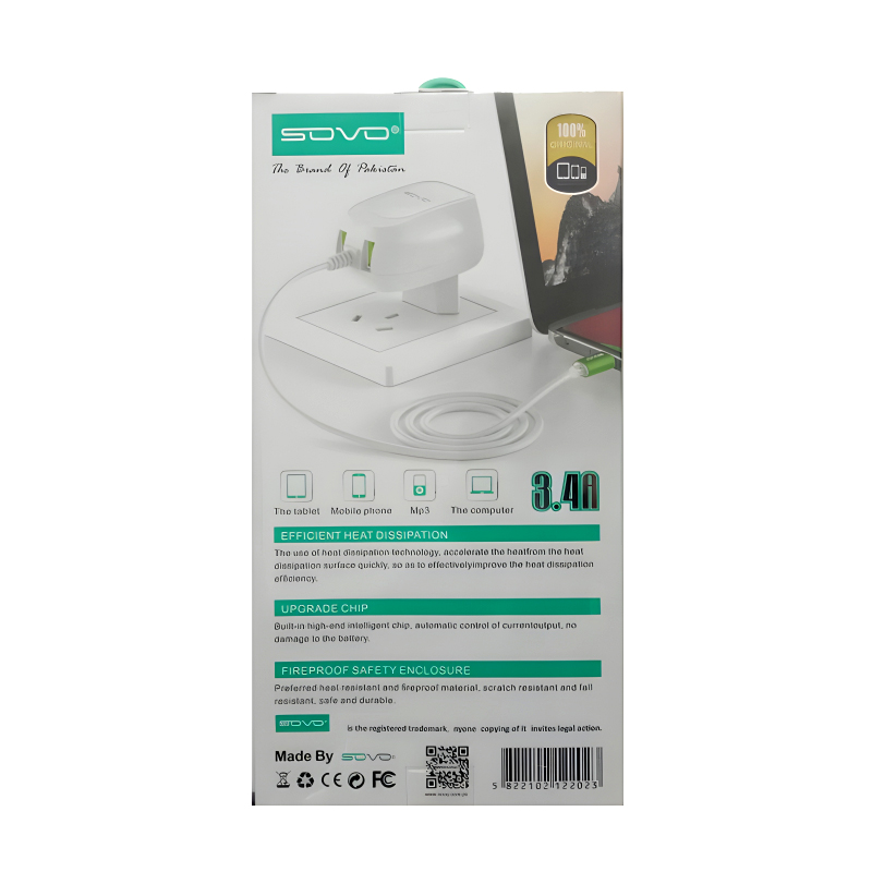Sovo SG-75 Ready 3.4-Amp 2USB High Quallity Type-C Cable Fast Charger