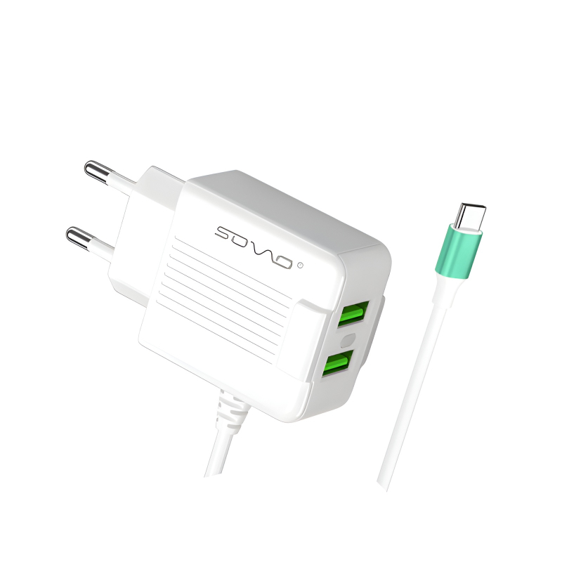 SOVO SG-77 FIRE-TC 2.4A High Quality Type-C Charger With Dual USB Output