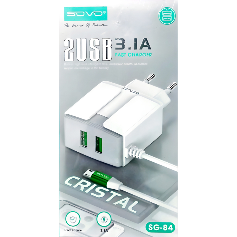 SOVO SG-84 Crystal 3.1-Amp 2USB High Quallity Micro Cable Fast Charger