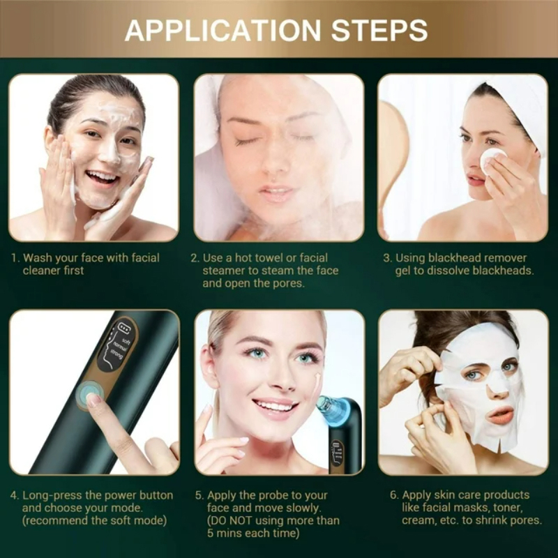 This multifunctional device goes beyond blackhead removal. Experience a reduction in grease, minimized skin acne, and exfoliation of dead skin cells. Enjoy deep skin cleansing that leaves your pores visibly refined and your skin revitalized.