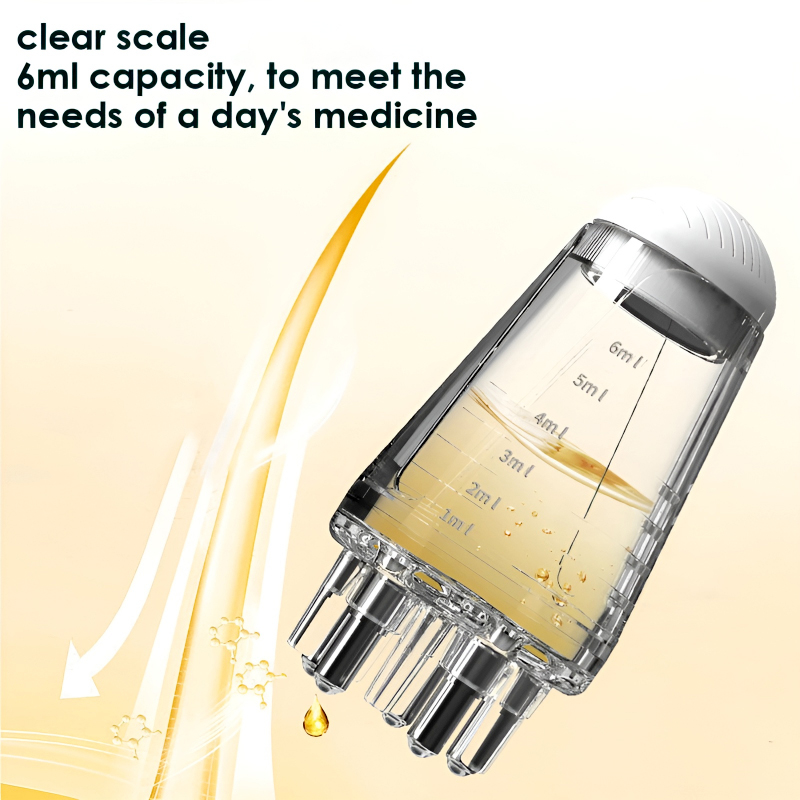 This innovative tool features five ball heads that dispense liquid medicine smoothly and quickly, paired with five massage teeth that promote better absorption of nutrient essences and offer a soothing scalp massage.
