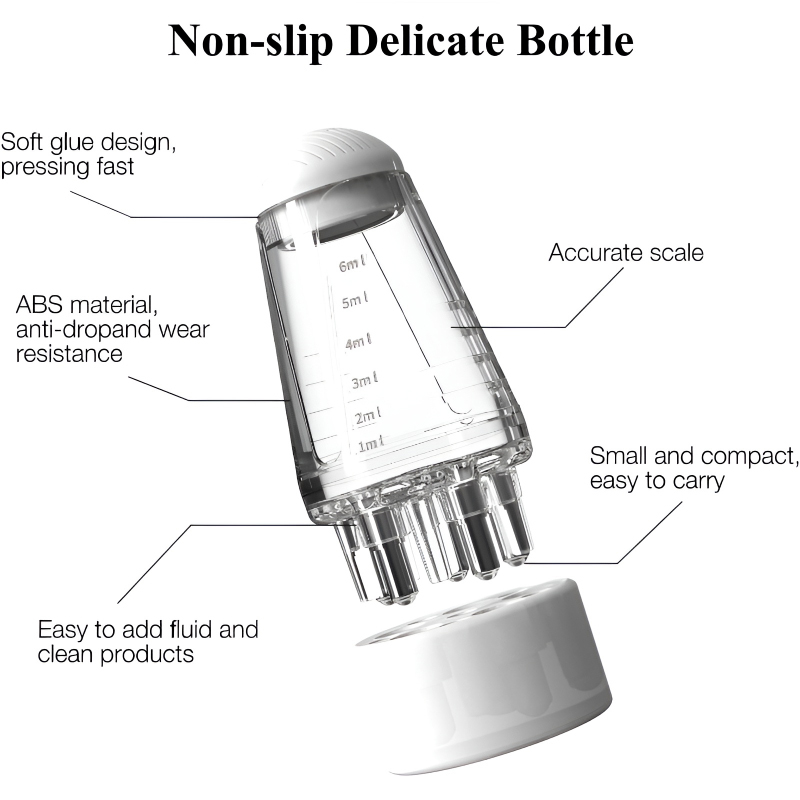 The 6ML capacity, coupled with a precise scale, allows for accurate application throughout the day. Its wide mouth design ensures easy refilling without leaks, while the enlarged base prevents spills by keeping the applicator upright.
