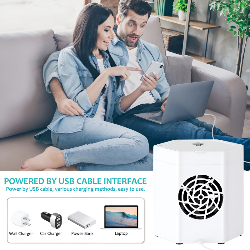 Enjoy a tranquil environment with its quiet operation while choosing between fan mode for a gentle breeze or fan mist mode for added refreshment. The multi-directional air vent ensures wide-angle coverage, while the quick and easy top-fill water tank simplifies maintenance. Powered via USB, it’s convenient for use with various power sources, offering cool air wherever you need it most, especially during hot weather.