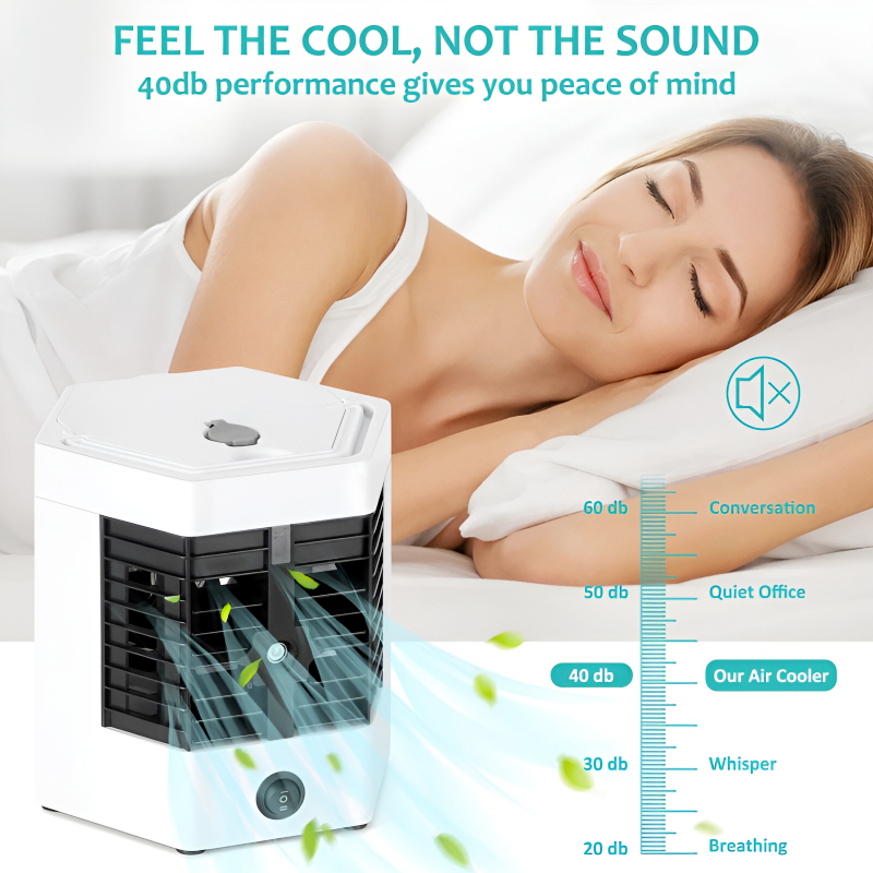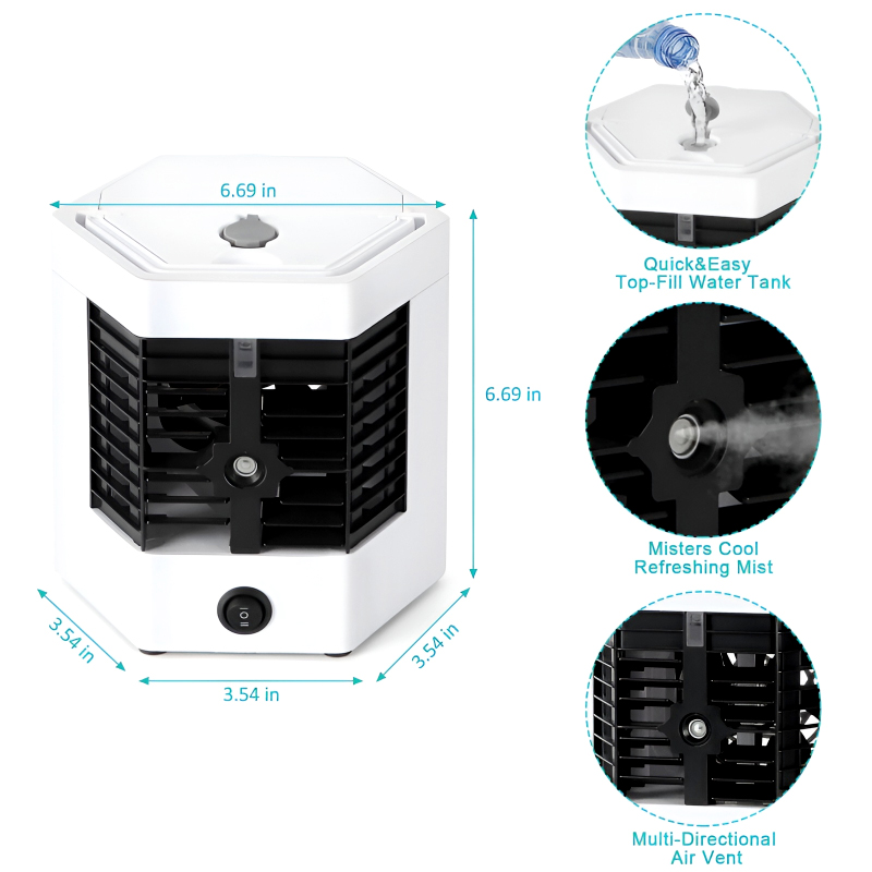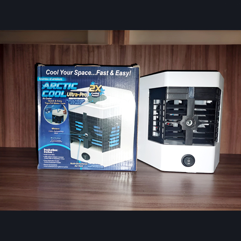 Experience rapid and effortless cooling with the Ultra-Pro Arctic Cool Mini Portable USB Air Cooler. Featuring advanced Hydro-chill Technology for 2x enhanced cooling power, this compact and lightweight unit is designed for ultimate portability, making it perfect for personal use in any space—from living rooms and offices to kitchens, bathrooms, bedrooms, and basements.