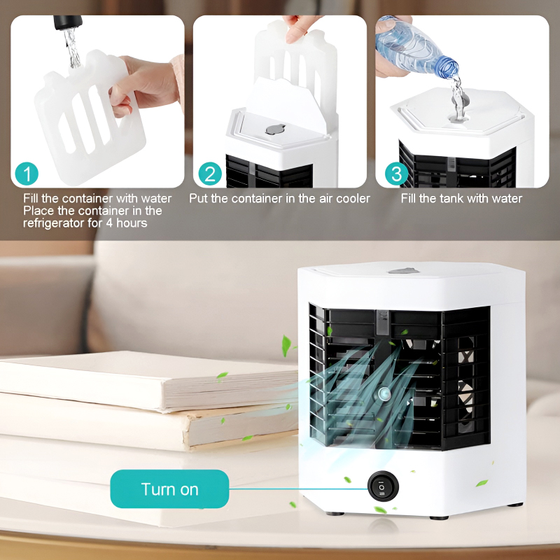 Simply fill the Arctic Cool Ultra Pro with water and enjoy its powerful cooling capabilities anywhere you go. Designed to transform hot air from any room into refreshing cool air instantly, this personal space cooler is perfect for staying comfortable during hot weather, ensuring a pleasant environment wherever you are.