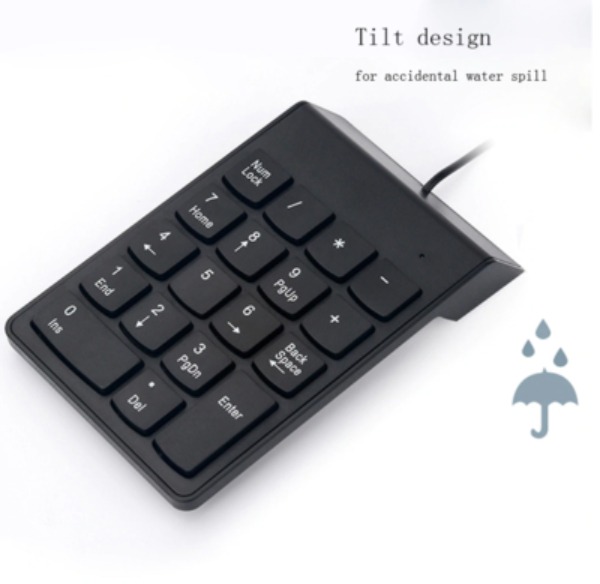 The keyboard comes with 18 keys of 0-9 number keys, Del, Enter, Num Lock, Backspace, + – * /